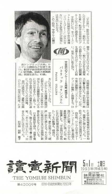 四年前、ロシアの宇宙ステーション「ミール」に乗る英国人飛行士に応募。六千人の中から最終候補の六人に残ったが、結局落選した。「宇宙飛行で有名になれば研究資金が得られるから」。その動機も、経済だ。