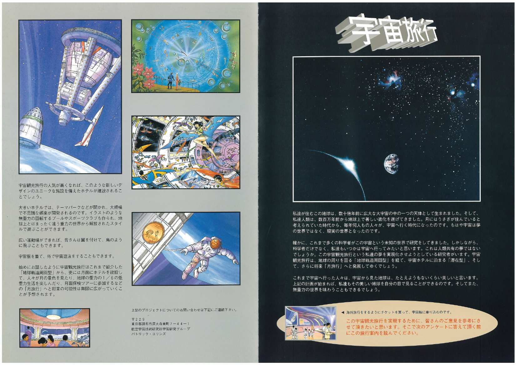 パトリック・コリンズ教授が世界で初めて、本格的な宇宙旅行についてのアンケートを行った際の、日本のアンケート資料の一部です。 このアンケートの結果、8割以上の人が宇宙旅行をしてみたいという希望をもっていることがわかりました。